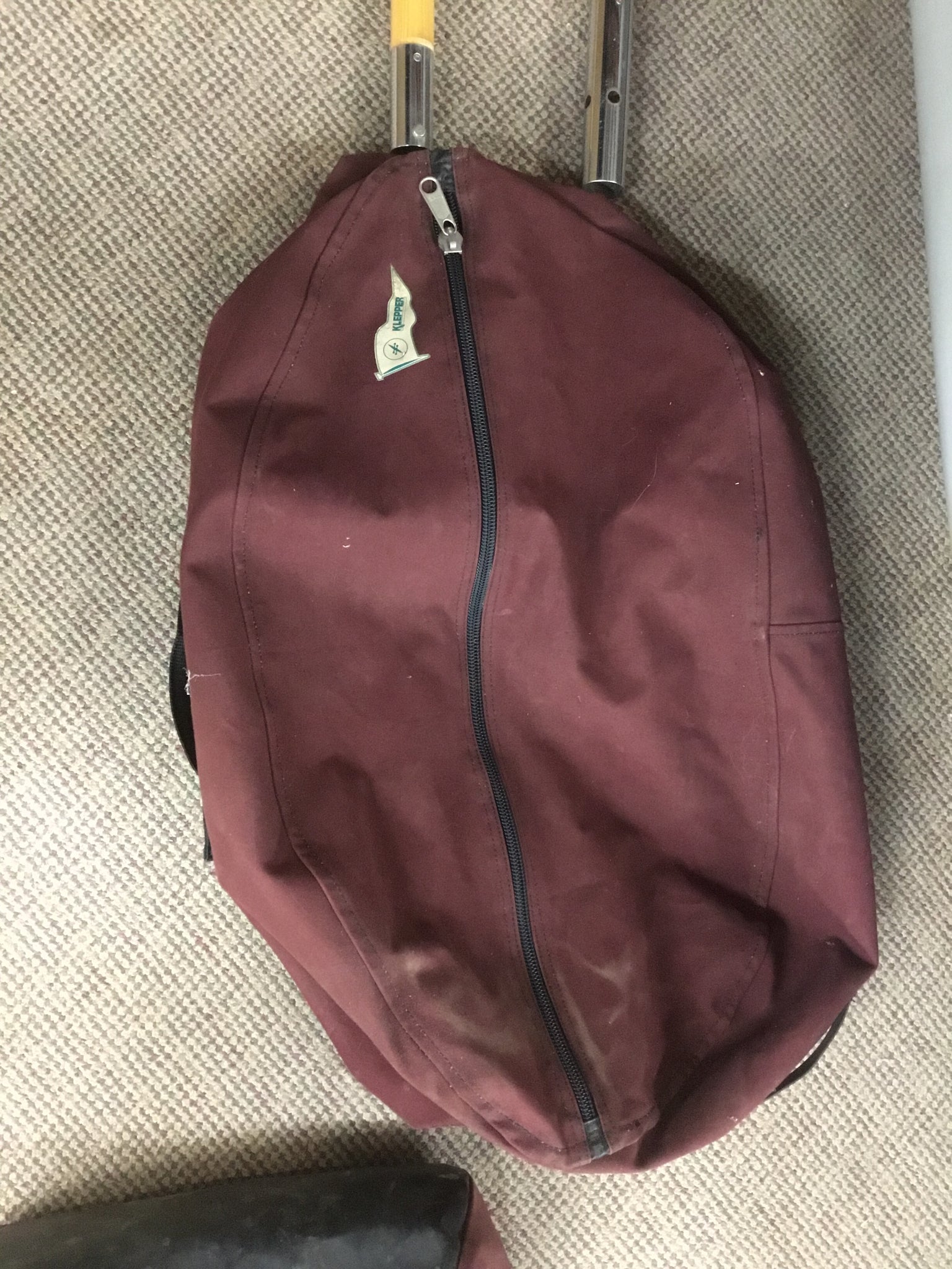 Package includes, new unused Klepper spray cover, the complete Klepper rudder assembly has never been taken out of its original plastic bag. The set of three original Klepper travel bags and paddle are in fine shape.